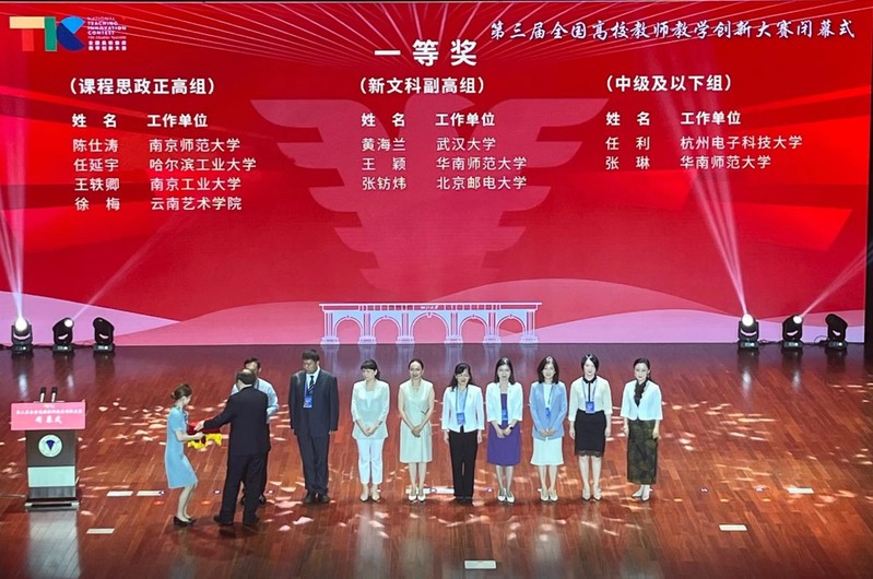 8月18日至22日,由教育部高等教育司指导、中国高等教育学会主办的第三届全国高校教师教学创新大赛决赛在浙江大学举办。我校外国语学院任利教师团队(成员包括:王一安、黄巍、熊颖哲)经过激烈角逐脱颖而出,荣获全国一等奖,实现了学校教师教学竞赛新突破。
